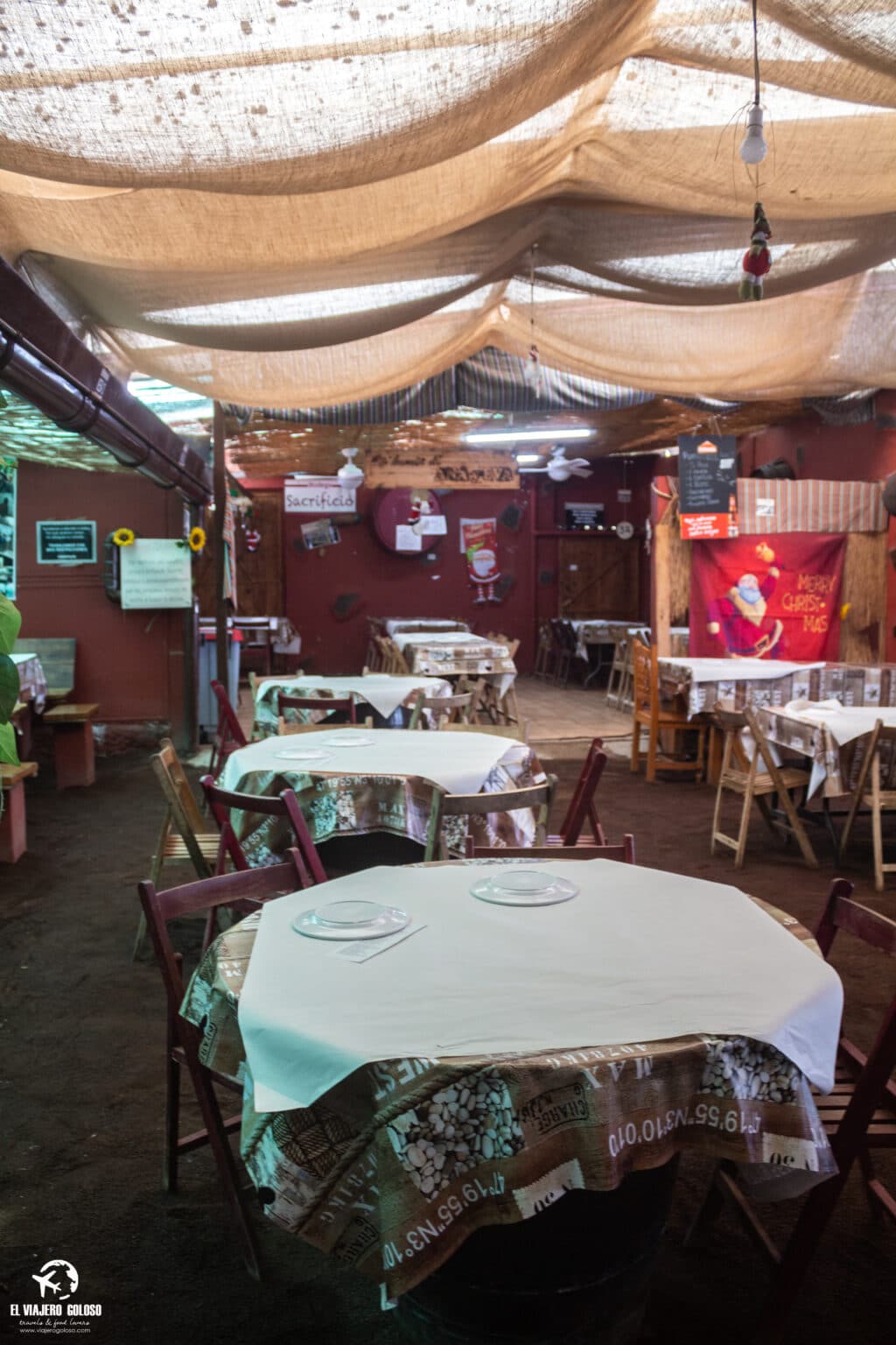 Como si de un almuerzo improvisado se tratara en el patio de una casa particular. Con mesas de varios tipos, todo muy cargado y con el suelo de arena. Como decíamos en anteriores post, todo muy especial. Es un tipo de local que nos ha enamorado y es el recomendamos para disfrutar completamente de la auténtica gastronomía tinerfeña.